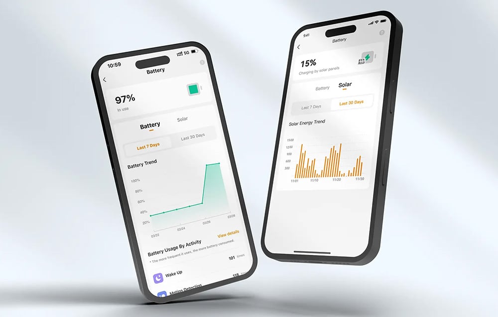 Kamera IMOU Cell PT Lite funguje na vstavanú 5000 mAh batériu, ktorá v pohotovostnom režime vydrží až 130 dní. Keď potrebujete viac energie, pripojte kameru k fotovoltickému panelu (je súčasťou balenia) a užívajte si prakticky neobmedzenú dobu prevádzky kamery. Batériu môžete tiež rýchlo dobiť pomocou kábla USB-C. Zariadenie neustále monitoruje spotrebu energie a všetky zozbierané údaje sú k dispozícii v aplikácii. Z nej môžete skontrolovať aktuálnu úroveň energie a v prípade potreby upraviť prevádzkový režim na optimalizáciu spotreby. Vďaka zariadeniu Cell PT Lite je váš majetok v bezpečí.