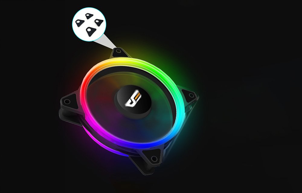 LED podsvietenie dodá vášmu počítaču originálny herný charakter. Dvojité RGB krúžky zaručujú úžasný efekt a môžu dokonale doplniť váš hardvér. Okrem toho bol dizajn ventilátora starostlivo premyslený, takže generované svetlo zaujme svojím jasom a živými farbami.