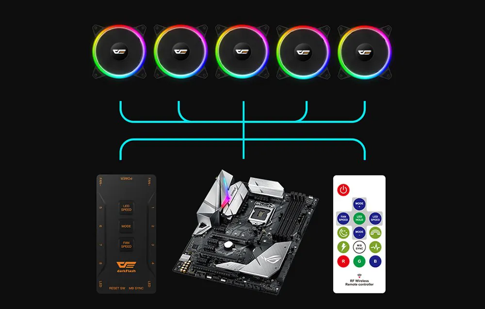 Sada počítačových ventilátorov ARGB Darkflash DR12 Pro 5v1 120×120 (čierna)