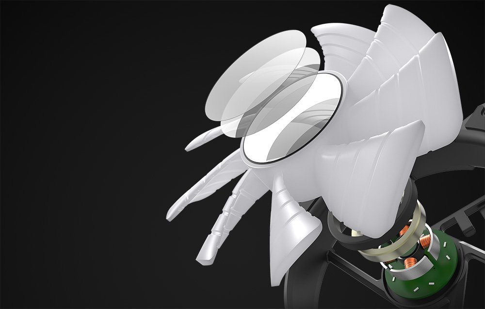 Ventilátory boli navrhnuté s dôrazom na každý detail. Vysokokvalitné ložiská Rifle sa vyznačujú životnosťou až 30 000 hodín. Až 9 lopatiek s hladkým povrchom zabezpečuje spoľahlivé chladenie, zatiaľ čo gumové tesnenia znižujú vibrácie a zabezpečujú tichý chod ventilátorov.