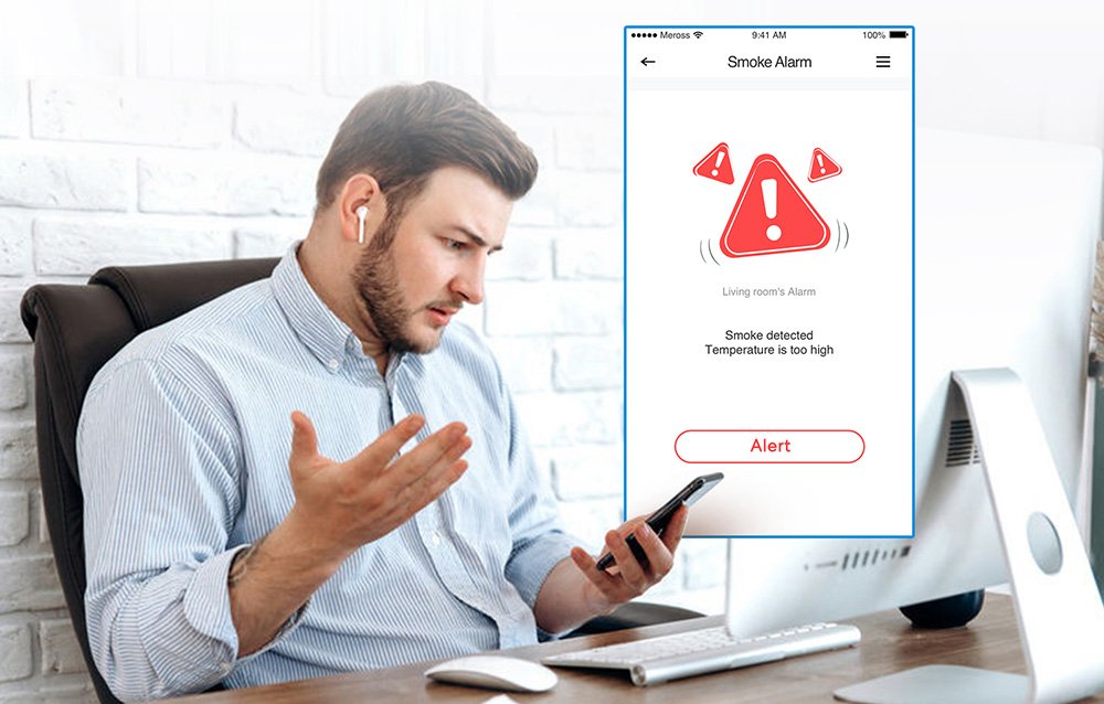 Tým sa výhody modelu GS559AH nekončia, zariadenie tiež rozpozná prehriatie a účinne vás o ňom informuje. Keď teplota prekročí 54 – 70 ℃, detektor dymu Meross spustí poplašný signál. Už vás nič neohrozí!