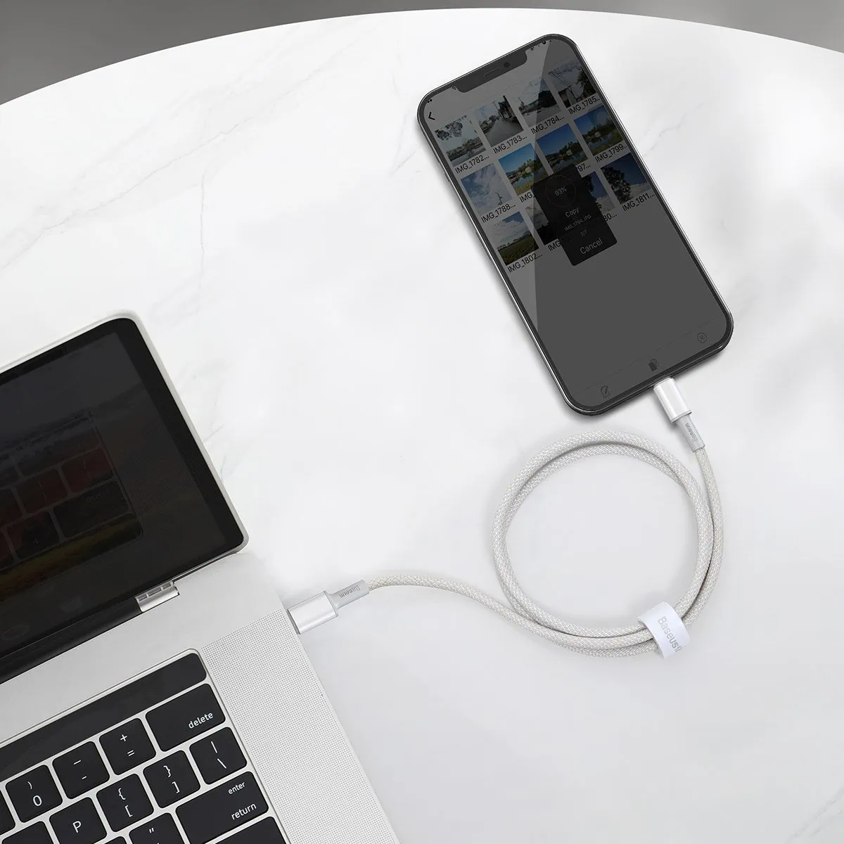 Praktický a odolný kábel Baseus určený na nabíjanie produktov Apple podporuje systém rýchleho nabíjania Power Delivery s výkonom až 20 W a je kompatibilný s nabíjačkami PD18W. Okrem toho poskytuje aj okamžitú rýchlosť prenosu dát až 480 MB/S.