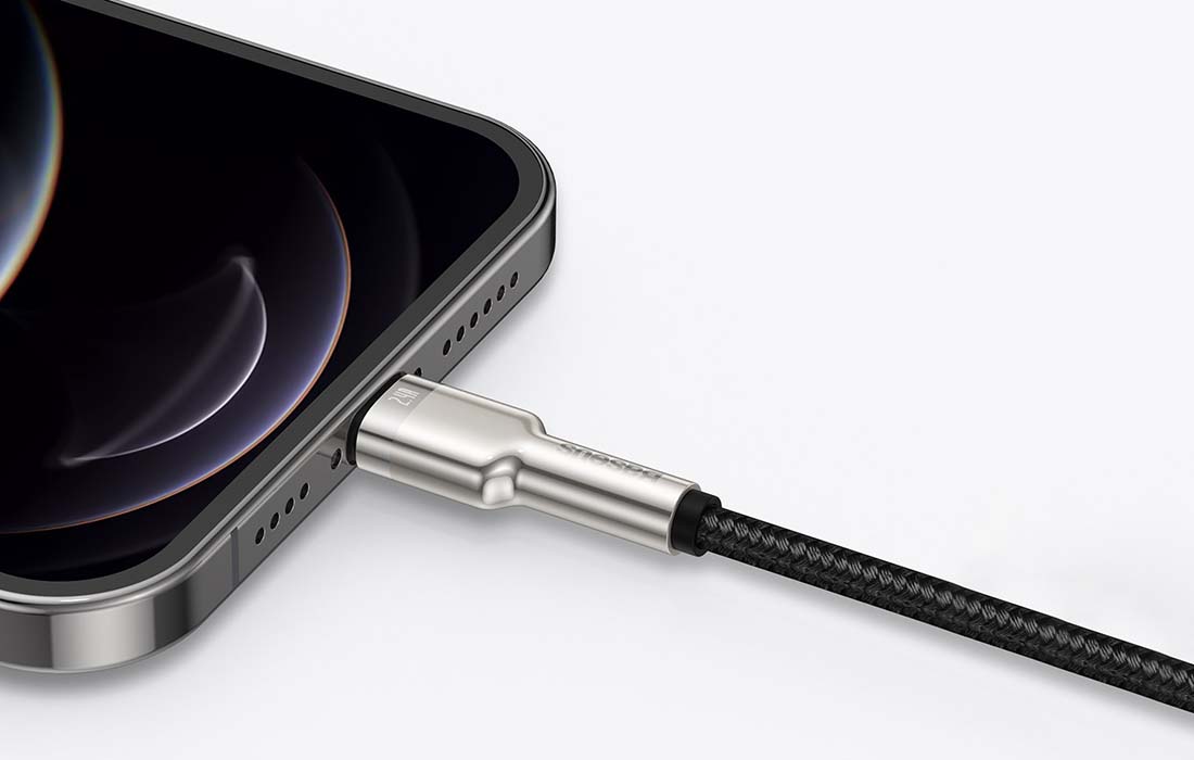 Kábel je kompatibilný so zariadeniami Apple s konektorom Lightning určeným na rýchle nabíjanie batérie iPhonu. Bol vyrobený z kvalitných materiálov, ktoré chránia pred poškodením. Príkladom je nylonový oplet, ktorý sa nedeformuje ani neláme, a batéria, ktorá odoláva poškodeniu a prehriatiu. Okrem toho gumová ochrana chráni pred poškriabaním a mechanickým poškodením.