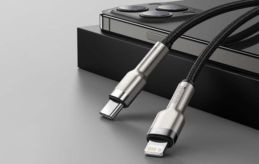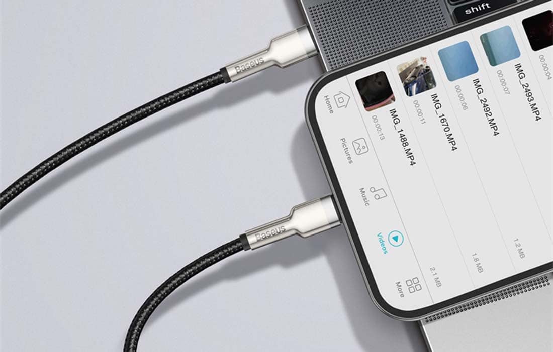 Kábel je vyrobený z vysokokvalitných produktov. Ide o materiály, ako sú kovové koncovky zástrčiek, nylonový oplet na ochranu pred poškodením a medené jadro na zvýšenie rýchlosti prenosu dát.