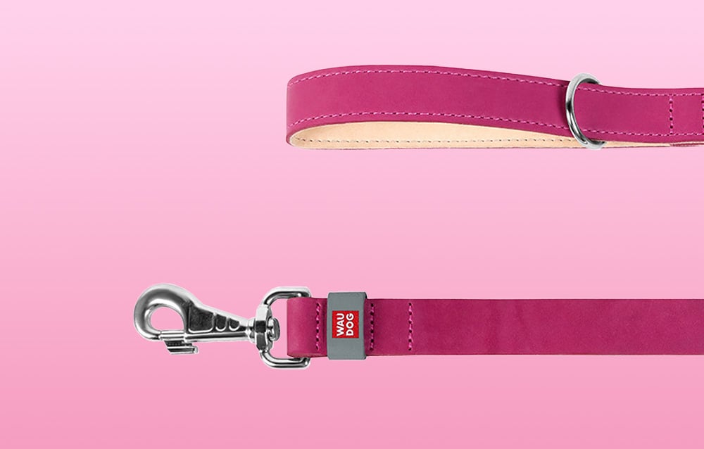 Vodítko pre psa WAUDOG z prírodnej kože, šírka 20 mm, dĺžka 122 cm (ružové).