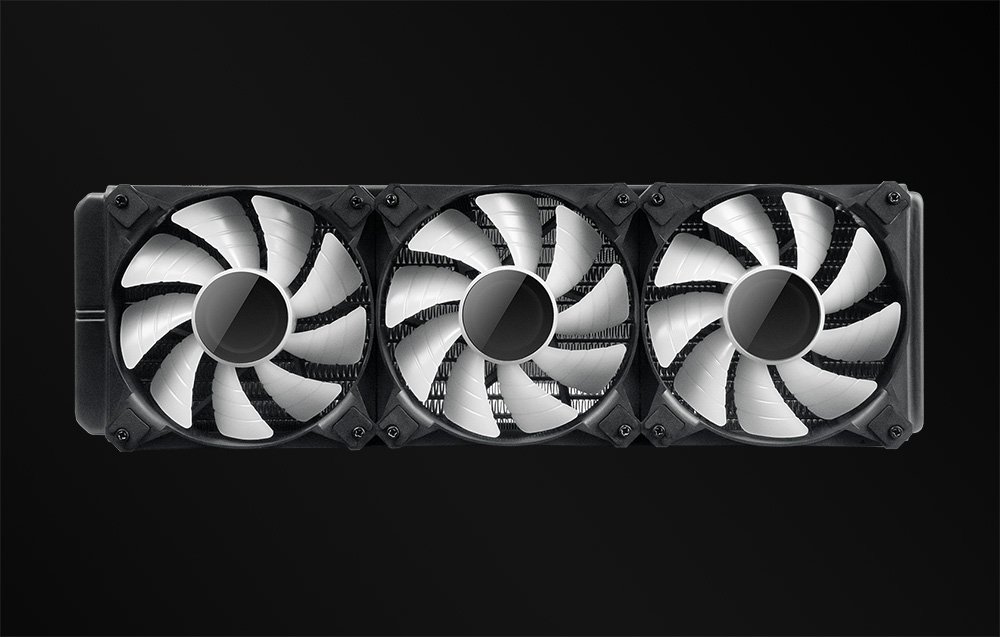 O účinné chladenie procesora sa starajú tri 120 mm ventilátory, každý s 9 lopatkami a kvalitným ložiskom Rifle. Vyznačujú sa tiež pôsobivým výkonom a nízkou hlučnosťou – len približne 32 dBA. To bolo možné vďaka použitiu špeciálnych antivibračných podložiek. Zabudnite na nepríjemný hluk! Ventilátory podporujú aj funkciu PWM, vďaka ktorej dokážu automaticky upravovať svoju rýchlosť podľa teploty procesora.