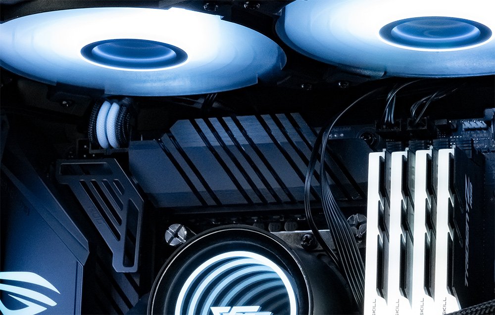 O účinné chladenie procesora sa starajú tri 120 mm ventilátory, každý s 9 lopatkami a kvalitným ložiskom Rifle. Vyznačujú sa tiež pôsobivým výkonom a nízkou hlučnosťou – len približne 32 dBA. To bolo možné vďaka použitiu špeciálnych antivibračných podložiek. Zabudnite na nepríjemný hluk! Ventilátory podporujú aj funkciu PWM, vďaka ktorej dokážu automaticky upravovať svoju rýchlosť podľa teploty procesora.